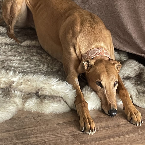 Austin is the most beautiful red fawn greyhound, we’re yet to meet another quite as handsome as him! His endearing overbite earned him the nickname Austin Powers, and it suits him perfectly because he really is one groovy boy.
